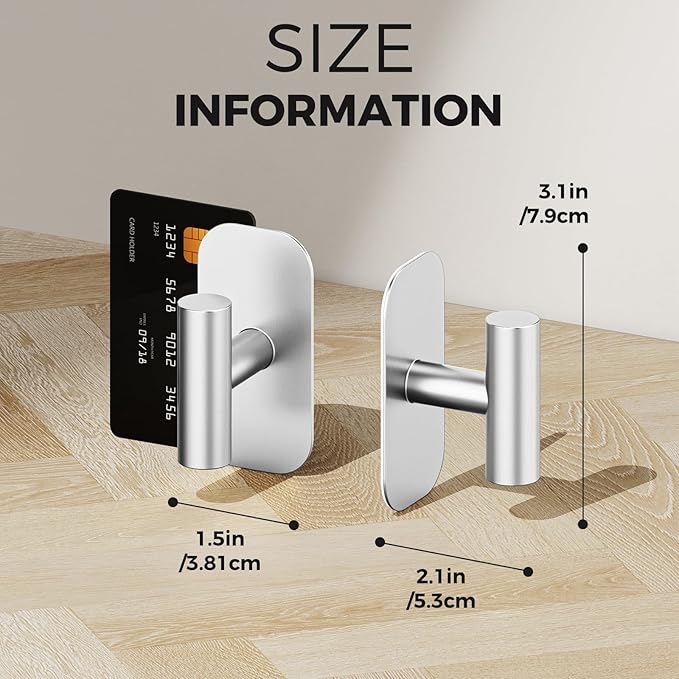 - 【Elevate Your Space】The silver adhesive hook got a simple square shape with a premium silver finish,which makes it look really stylish and modern.It'll fit right in with your home,bathroom or office,and make the place look even better