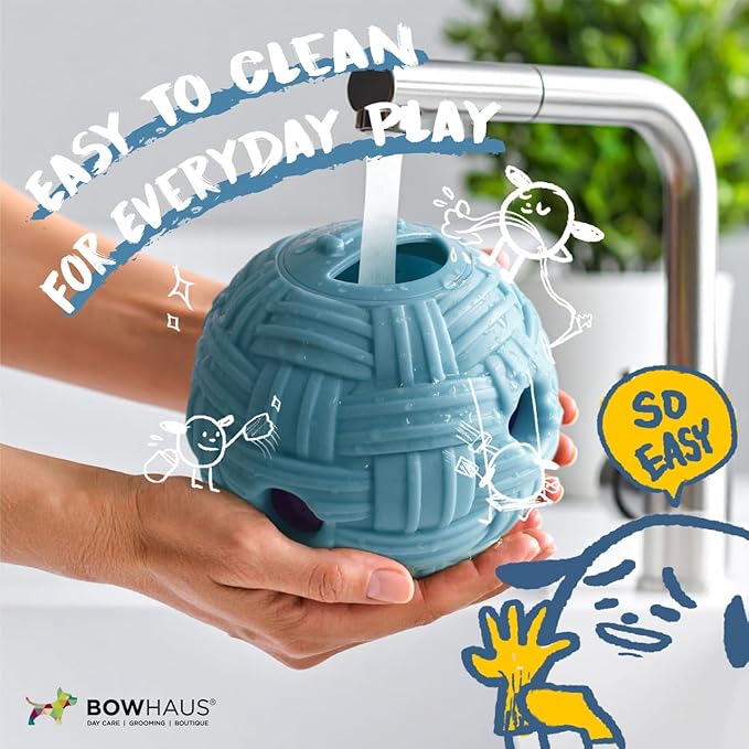 - l 5.5 Inch Ball with Clutch Pockets and Easy Cleaning: Perfect 5.5-inch size suitable for all dog breeds; four clutch pockets make the ball easy to carry and fun to chew; this wobble ball design allows quick rinsing for hassle-free cleaning after playtime