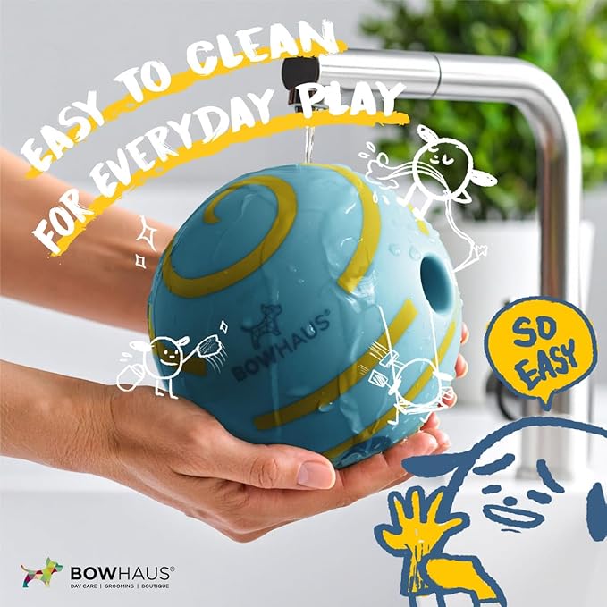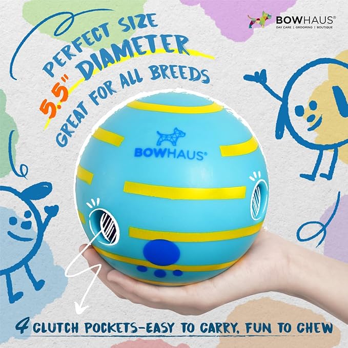 - l 5.5 Inch Ball with Clutch Pockets and Easy Cleaning: Perfect 5.5-inch size suitable for all dog breeds; four clutch pockets make the ball easy to carry and fun to chew; this wobble ball design allows quick rinsing for hassle-free cleaning after playtime