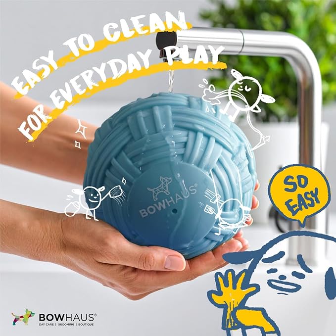 - l 5.5 Inch Ball with Clutch Pockets and Easy Cleaning: Perfect 5.5-inch size suitable for all dog breeds; four clutch pockets make the ball easy to carry and fun to chew; this wobble ball design allows quick rinsing for hassle-free cleaning after playtime