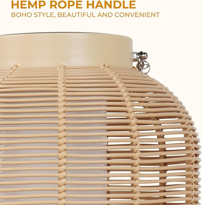 - Boho-Inspired Design: Add a rustic yet elegant touch to your outdoor space with this hanging solar LED lantern. Handwoven from natural-toned wicker, its light and airy design lets warm white light gently glow through, creating a cozy and enchanting atmosphere