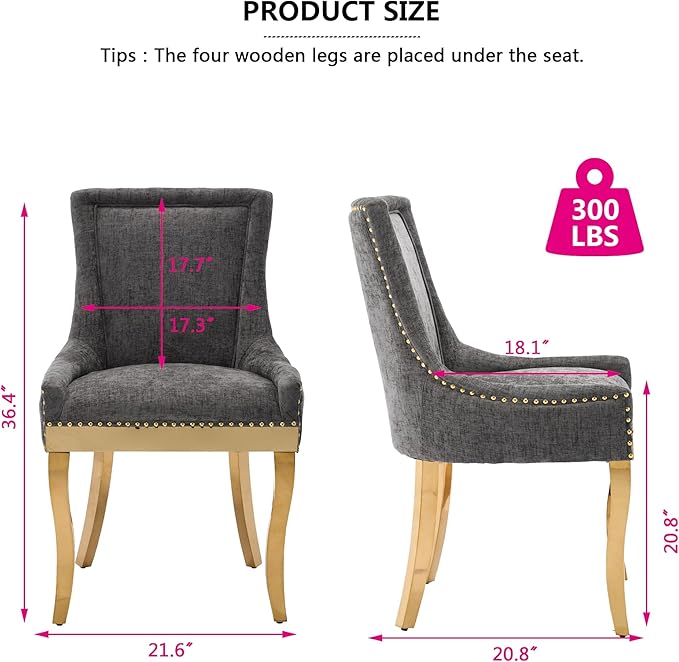 - Sturdy Frame: The frame of accent dining room chairs are made from distressed solid wood, and they are strongly supported by robust golden metal legs,providing long-term stability and durability that can support up to 300lbs. Plus, 4 non-slip adjustable legs can adapt to uneven floors and protect it from scratches.