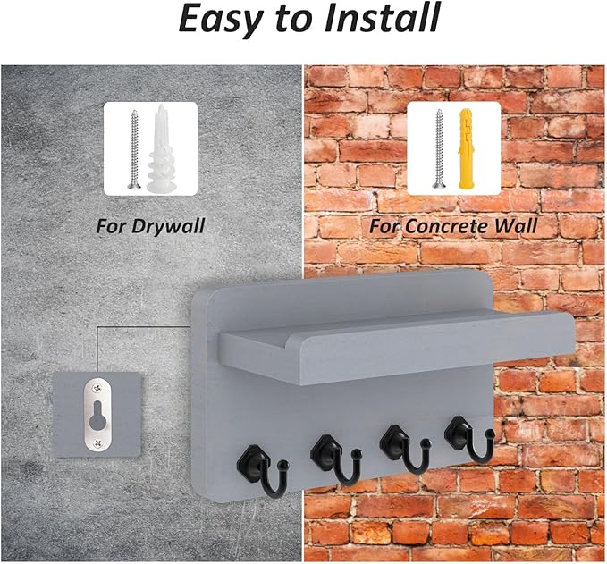 - [SMALL KEY HOLDER] Four sturdy hooks make this small key holder perfect for keys, leashes, handbags, and coats, while the built-in shelf ensures tidy organization of wallets, sunglasses, photo frames and more.
