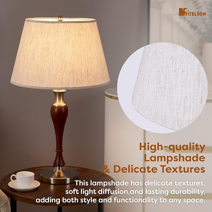 - Elegant Handcrafted Design: Mitelson’s Table lamp is meticulously crafted from natural solid wood and accented with a natural linen lampshade. Paired with polished metal, it exudes sophistication, effortlessly complementing modern, minimalist, rustic, or mid-century decor. Add a touch of class to any room.