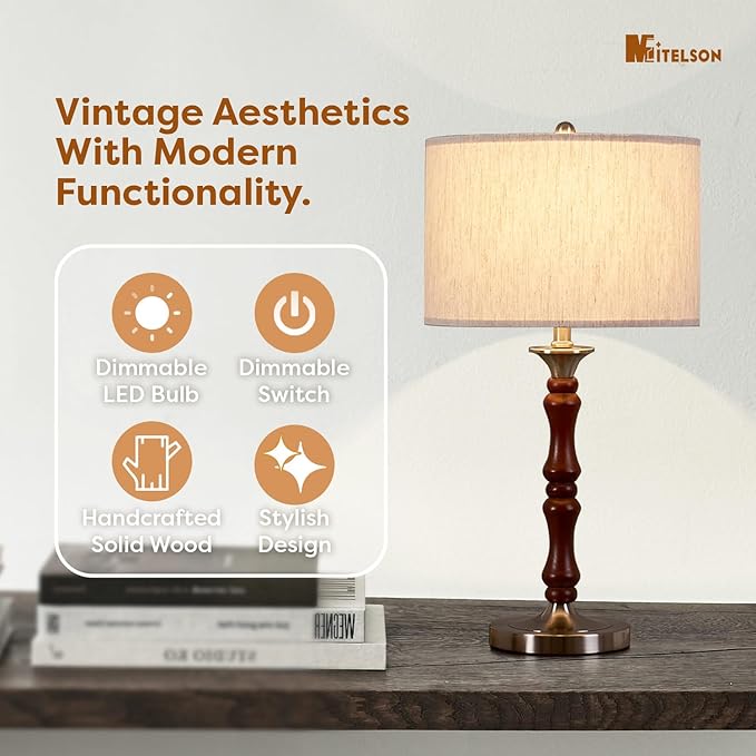 - Elegant Handcrafted Design: Mitelson’s Table lamp is meticulously crafted from natural solid wood and accented with a natural linen lampshade. Paired with polished metal, it exudes sophistication, effortlessly complementing modern, minimalist, rustic, or mid-century decor. Add a touch of class to any room.