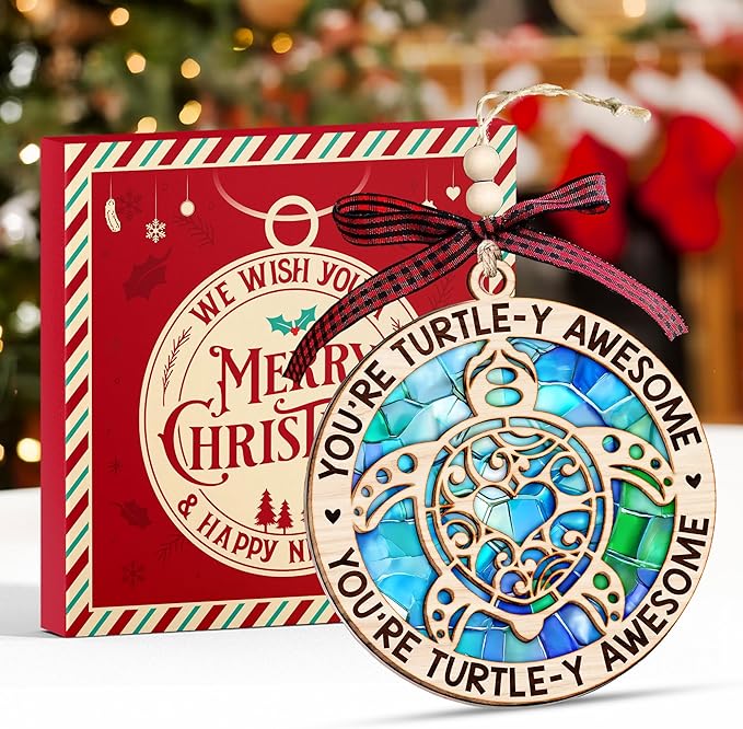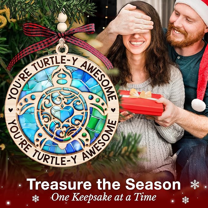 - PREMIUM 2 LAYERED MIX (WOOD + ACRYLIC) CRAFTSMANSHIP - Expertly crafted from durable wood and dazzling acrylic, this turtle Christmas ornament merges with beauty with refined clarity. Enjoy lasting quality and vivid sea turtle designs, ensuring your ornament remains a treasured part of your beachy Christmas ornaments and turtle decor collection through many holiday seasons.