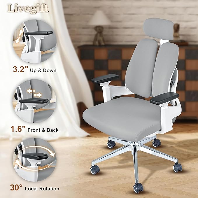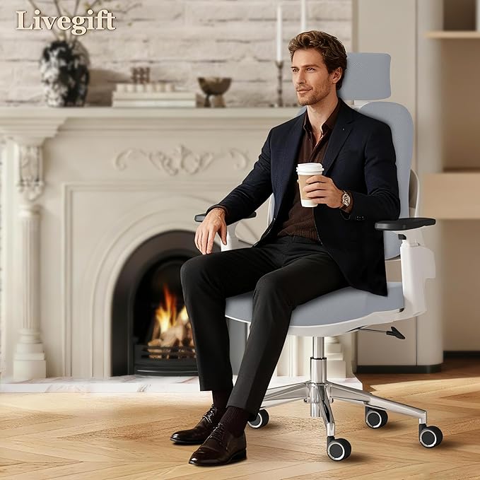 - ✔ 5D ADJUSTABLE 135° ROTATIONAL HEADREST: 5-axis cervical support headrest of Livegift office chair with curved lamellar structure enables tilt (±15°), height (2" range), and 135° rotational fine-tuning—the industry's first true multi-posture adaptation system. Automatically maintains C1-C7 vertebrae alignment during posture changes, it can decrease neck fatigue by 41% in 6-hour gaming sessions through multiple experiments and tests.