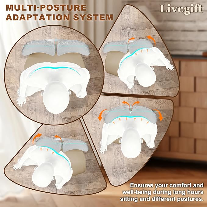 - ✔ TARGETED SACRAL AND LUMBAR SUPPORT: For the back and waist tension via rear knobs allows personalized adjustment to meet your needs. Livegift desk chair comforts for work and gaming, supports for back pain & sciatica, reduces pressure by 32% during 8-hour work sessions, ensures your comfort and well-being during long hours sitting.