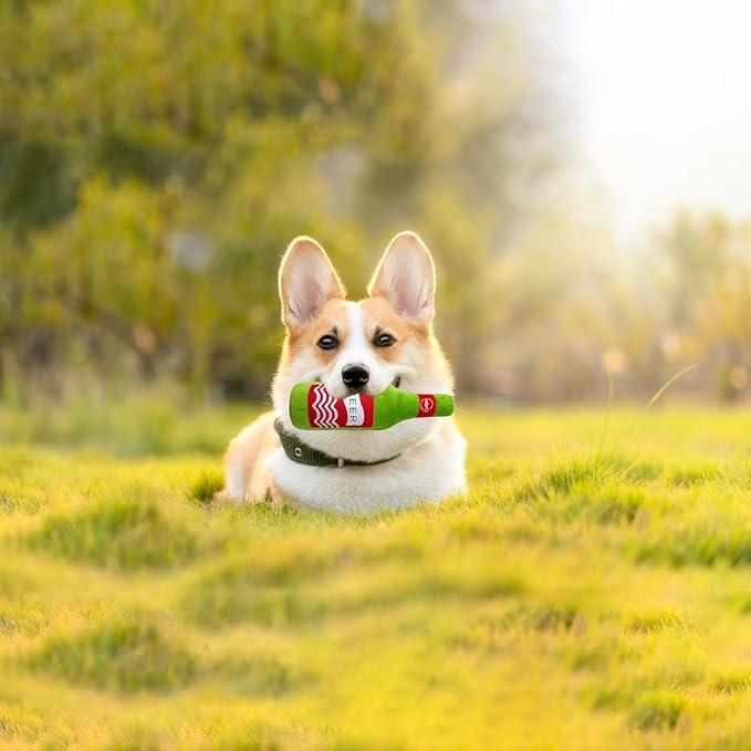 - Squeaky Wine Bottle Charm: Equipped with a high-quality built-in squeaker that emits lively sounds, triggering your dog’s natural curiosity and keeping them entertained for hours. The funny wine bottle shape adds playful flair—perfect for cute photo ops, party decor, or turning ordinary play into bonding moments. It’s one of the most engaging funny dog toys for everyday joy