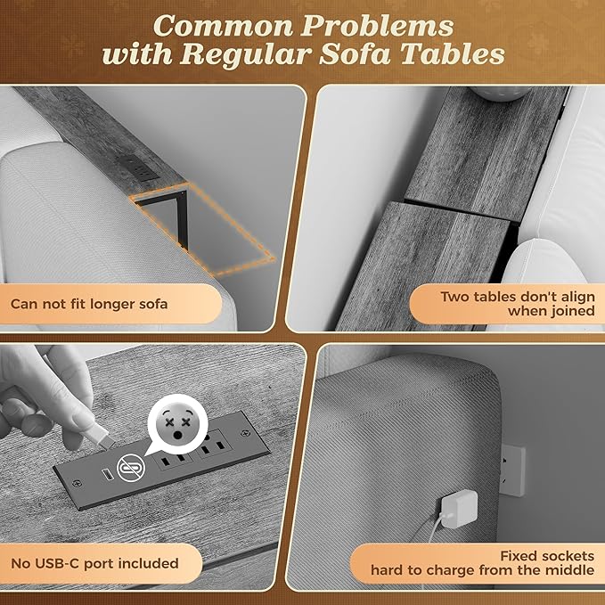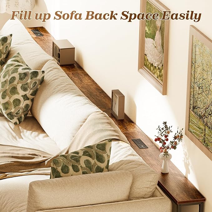 - 【Easy to Assemble & Fits Anywhere】Whether behind a sofa, in an entryway, or along a narrow wall, this couch table behind sofa is the perfect storage solution for tight spaces. Designed to leave room for wall vents and easy airflow. Comes with clear instructions, labeled parts, and tools included, you'll have this sofa table with outlet set up in no time