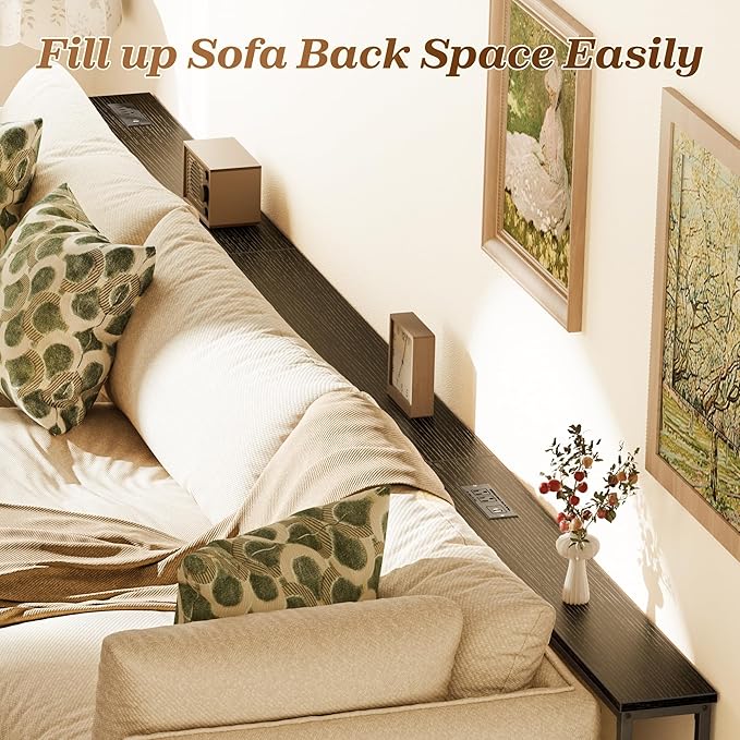 - 【Easy to Assemble & Fits Anywhere】Whether behind a sofa, in an entryway, or along a narrow wall, this couch table behind sofa is the perfect storage solution for tight spaces. Designed to leave room for wall vents and easy airflow. Comes with clear instructions, labeled parts, and tools included, you'll have this sofa table with outlet set up in no time