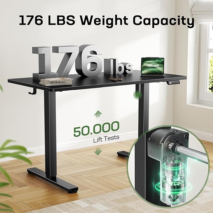 - Strong Steel Construction: This electric standing desk is designed with a heavy-duty steel frame that can support up to 176 lbs of weight. The office desk’s motor has been tested to withstand 50,000 lift cycles to ensure exceptional reliability and long-lasting performance. The product is shipped in two separate packages, with one package containing the tabletop and the other containing the frame