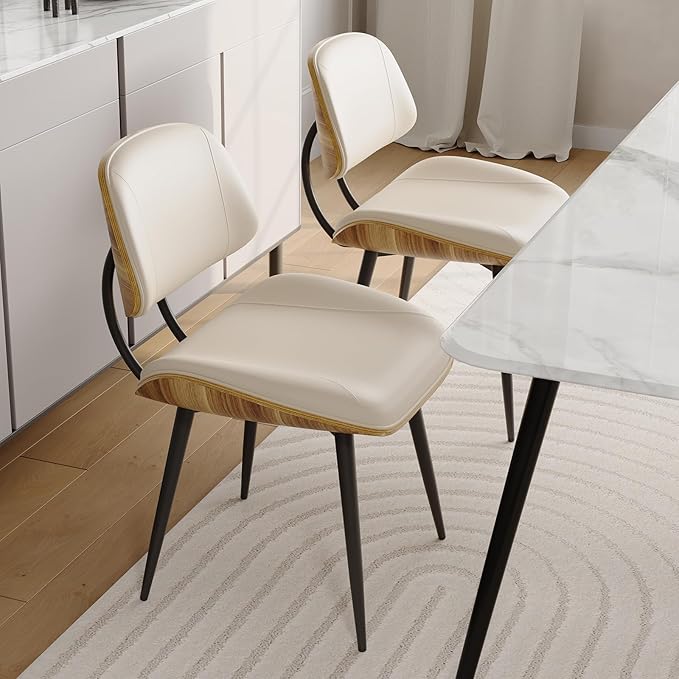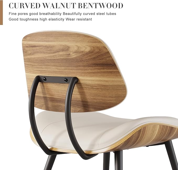 - Mid Century Modern Elegance: Elevate your space with these PU leather armless dining chairs, featuring a walnut bentwood back and sleek metal legs. The retro-modern design blends seamlessly into mid-century, industrial, or minimalist decor, perfect for dining rooms, kitchens, or living rooms