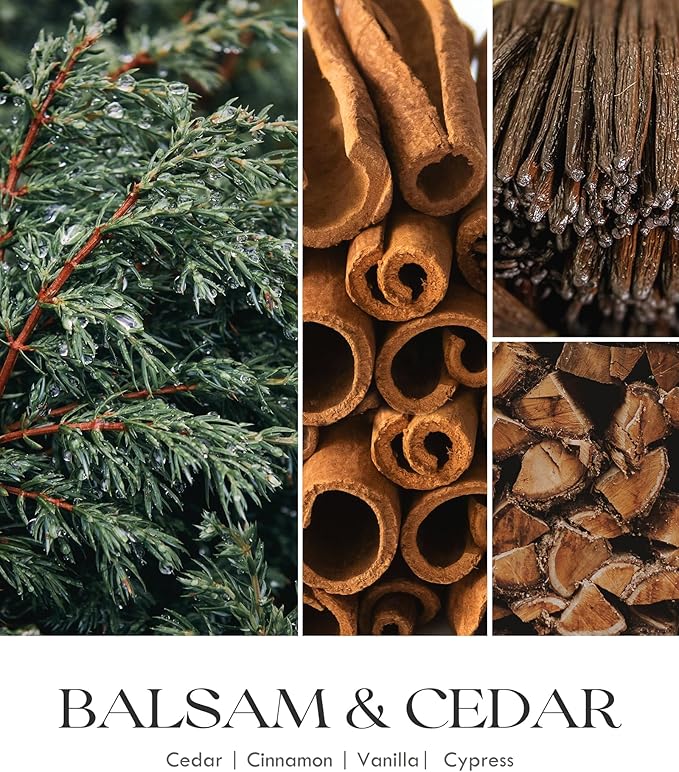 - Pine Candle:Immerse your space in a comforting embrace of warmth and delight with our Balsam Cedar candles. Enjoy the invigorating scent of balsam, complemented by the heartening essence of cedarwood and the soothing notes of sandalwood.