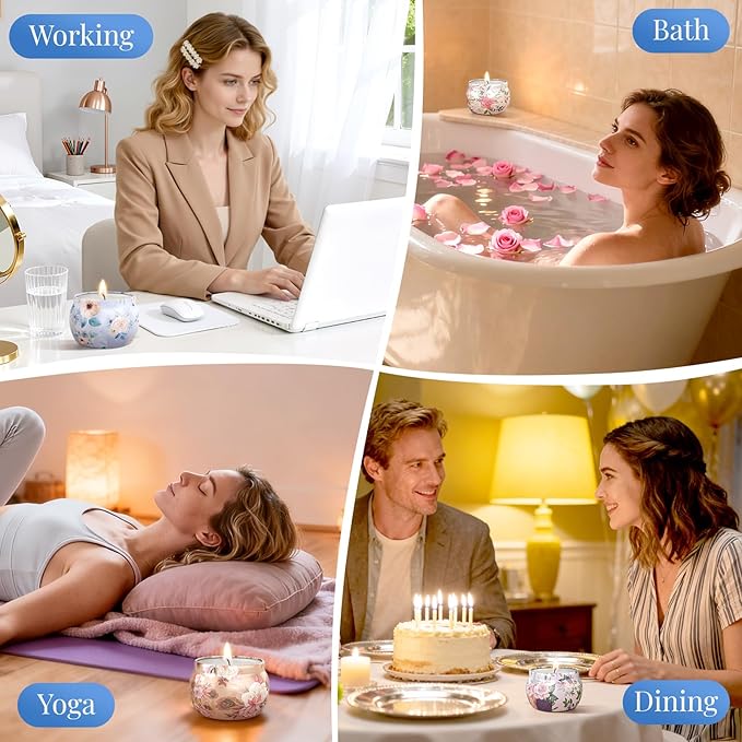 - [Long Lasting Combustion] Each jar of BlissfulOasis scented candles contains 2.5 oz net, and a complete set of our candles for home scented can burn for approximately 180-240 hours