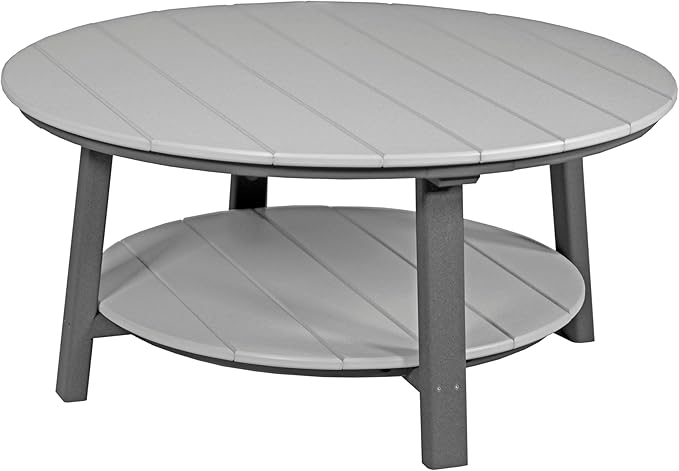 LuxCraft Deluxe Poly Round Outdoor Coffee Table, Two Tier Coffee Table, Round Conversation Tables for Outside Patio with Lower Shelf - Amish Made in USA (Dove Gray & Slate)