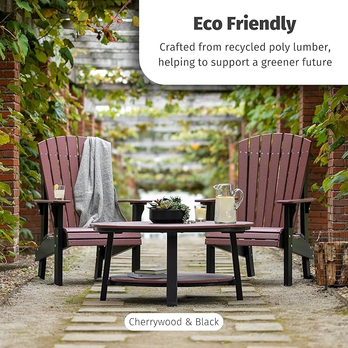 - Built for the Outdoors with Durable Poly Lumber - This outdoor coffee table is constructed from eco-friendly poly lumber, made from recycled plastics. Poly is resistant to fading, warping, and splintering, making it the ideal choice for long-lasting outdoor furniture. Whether you need deck coffee tables for outside or a circular outdoor coffee table for a garden seating area, this low maintenance table offers durability without the upkeep of wood.