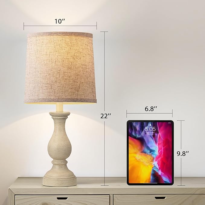 Seealle Farmhouse Table Lamps Set of 2 - Rustic Lamp for Bedroom Living Room, 22" Boho Bedside Lamps for Night Stands End Table Office Desk Lamp Nightstand Clearance with Linen Shades(Antique White)