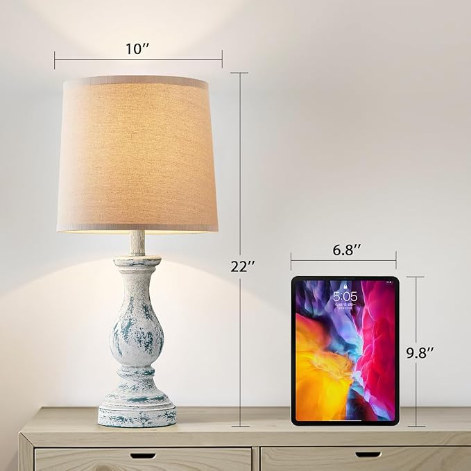 Seealle Farmhouse Table Lamps Set of 2 - Rustic Lamp for Bedroom Living Room, 22" Boho Bedside Lamps for Night Stands End Table Office Desk Lamp Nightstand Clearance with Linen Shades(Washed Blue)