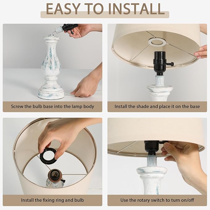 - One-Minute Setup - Setting up your new lamp for bedroom is a breeze! Thoughtfully designed for ease and sustainability, our farmhouse lamp require minimal assembly. With a step-by-step installation guide available online and all necessary accessories included in the packaging, you'll have your lamps ready to shine in no time.