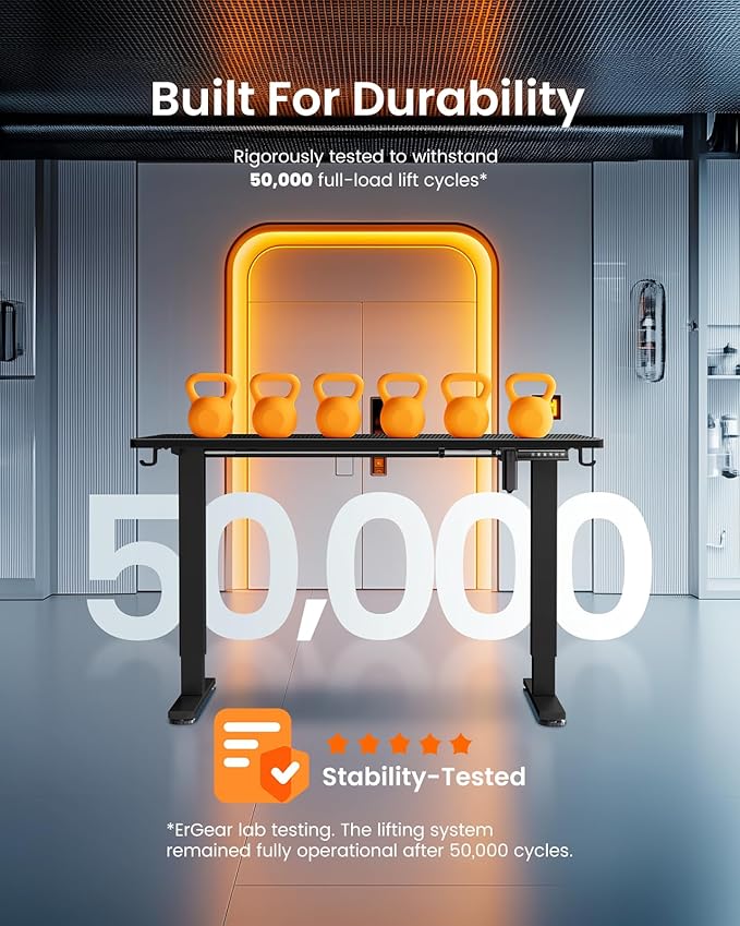 - Outstanding Stability: This electric standing desk has a sturdy solid steel frame with aerospace-grade lifting column connectors (still stable & secure after testing 100,000 times). It's a firm foundation for work, even at full height