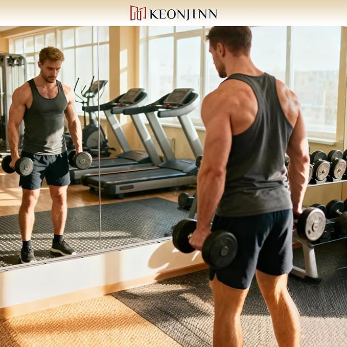 - Clear Reflection: Made from premium high-definition mirror glass, this frameless gym mirror provides a crisp, clear reflection. It allows you to clearly observe your form and posture during exercises, helping ensure correct movement execution and enhancing the effectiveness and experience of your home workouts.