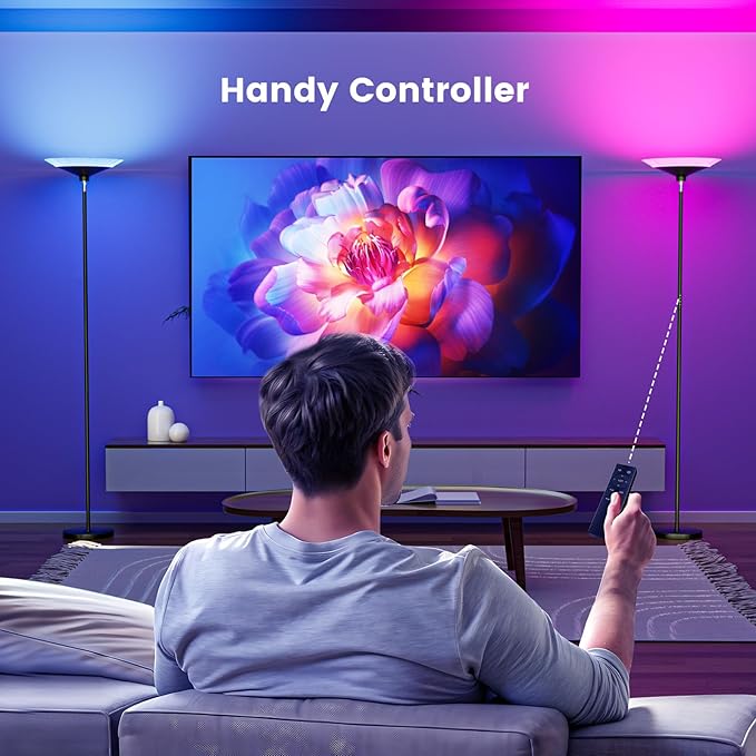 - 【Dynamic RGB Effects】Our led standing lamp, combines 4 CCT from warm yellow to white daylight, and 7 RGB colors from single color to smooth gradient fades, vibrant color jumps. Ideal for gamers, designers, or anyone wanting ambient lighting.