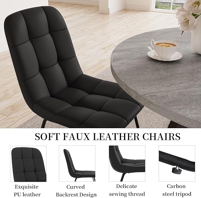 - Modern Round Table Set: This stylish round dining table set features a round table crafted from thick MDF material with a unique textured finish, complemented by 4 PU leather chairs with ergonomic curved backs and high-elastic sponge seats.