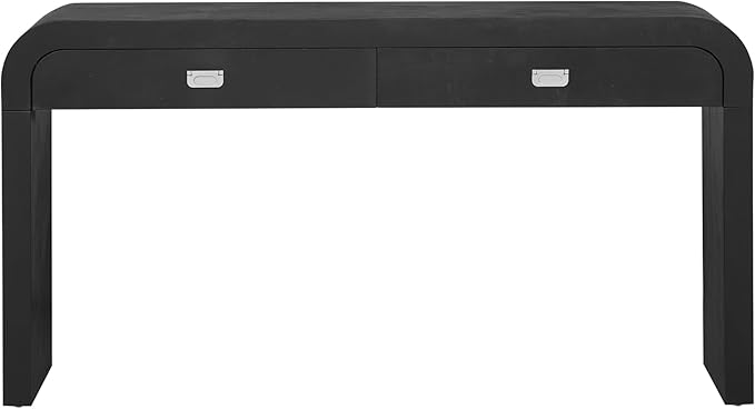 60" Farmhouse Wooden Curved Console Table Sofa Table with Drawers, Mid-Century Modern Entryway Table with Burl Natural Wood Veneer for Living Room,Entryway Foyer,Hallway,Office (Black)