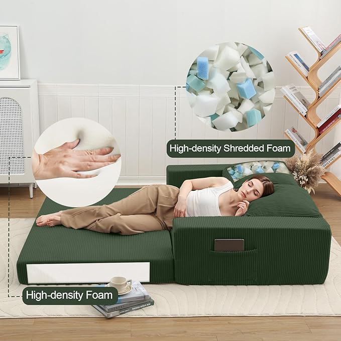 - Ultimate Comfort: Crafted with high-quality foam and shredded foam, this convertible fold out bed is designed to provide you with exceptional comfort. The corduroy fabric adds a touch of elegance while ensuring a plush and restful experience