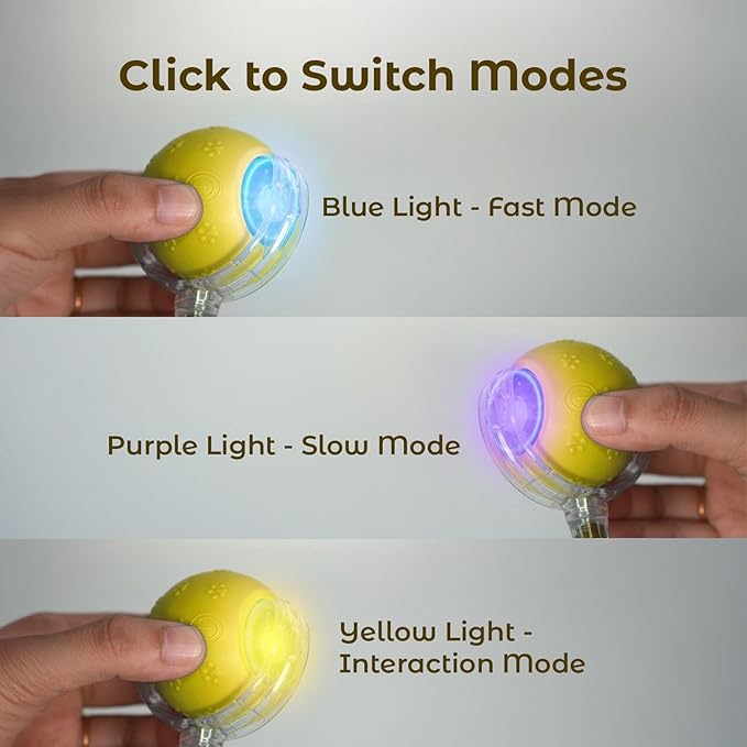 - πΎ Two Play Modes to Match Every Mood β This interactive toy features both Slow and Fast modes, making it perfect for everything from playful kittens to laid-back senior cats and small dogs. Red and blue LED indicators help signal the current mode, keeping your pet engaged no matter their energy level.