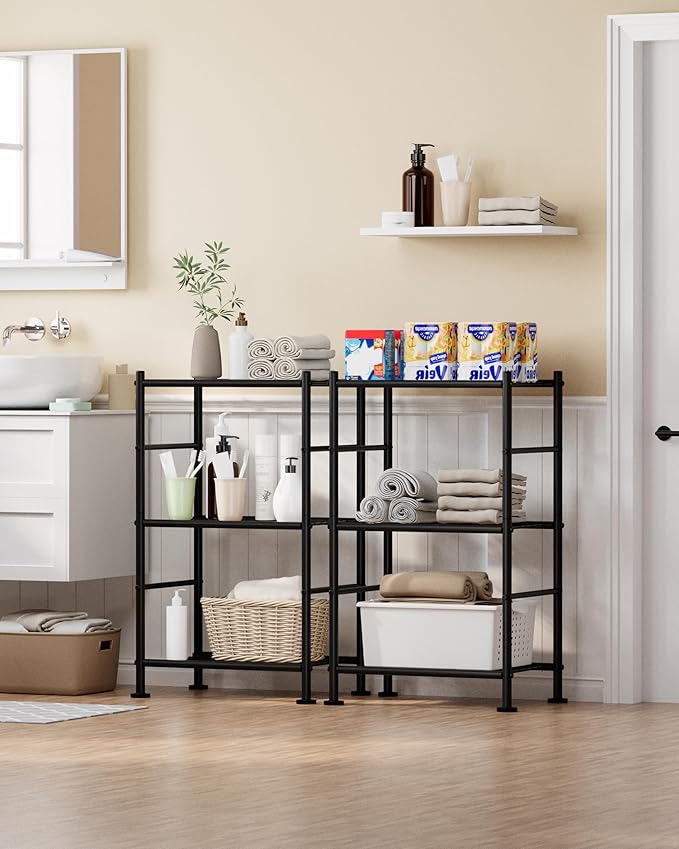 2-Pack Storage Shelves - 3-Tier Metal Wire Shelf Organizer, Slim Shelf Rack with Adjustable Feet for Laundry Room, Kitchen, Garage Organization, 18.2" x 12.3" x 30.4", Black
