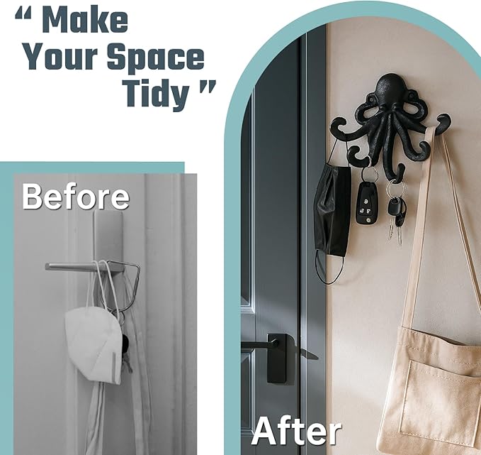 - 【Creative Octopus Design】– Features a unique sea-creature shape with multiple arms, adding a fun coastal touch to any room while keeping your keys, towels, or hats neatly organized.