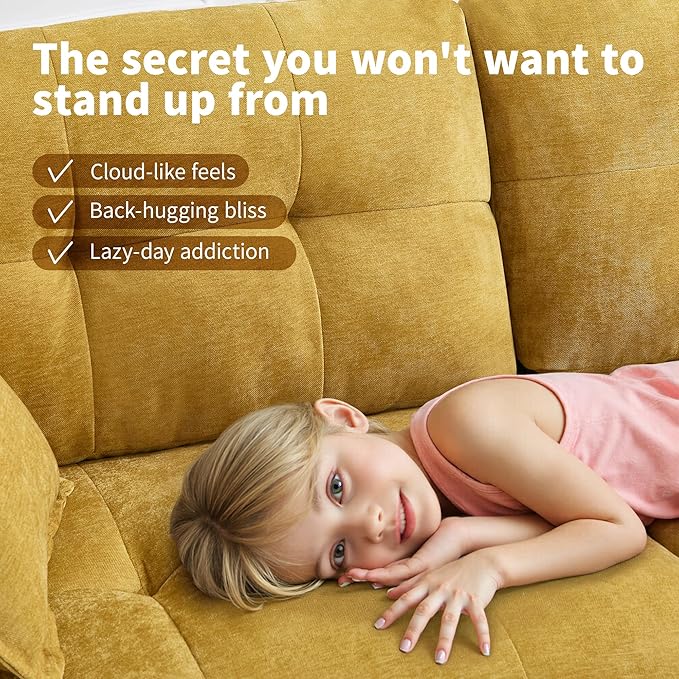 84" Loveseat Sofa, Modern Couches for Living Room,Double-Layer Cushion Cloud Couch with Deep Seat,Super Comfy Chenille Sofas,Sturdy Frame, Easy Assembly for Bedroom, Apartment, Office, Yellow