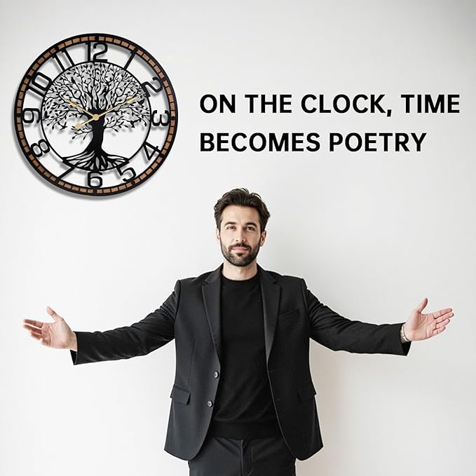 - 【Easy to Read】-Black tree clock face designed with classic large bold black Arabic numerals and retro golden pointers-easily to read for children and the elder from all directions.