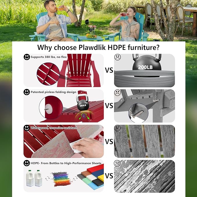 - ☘️【3-year Service】: Plawdlik provides 3 years after-sale service. If you have any question about the order or product, please feel free to contact us, we want our customers to be 100% satisfied with Plawdlik adirondack chair