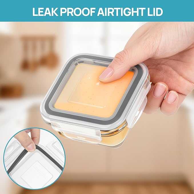 - 【SAFE FOR OVEN/ MICROWAVE/ FREEZER/ DISHWASHER】The glass meal prep containers safe for oven, microwave, dishwasher and freezer. It can withstand temperatures from -4ºF to 752ºF (-20ºC to 400°C) . (Note: Before putting it into the microwave/ oven, please take off the lid.)