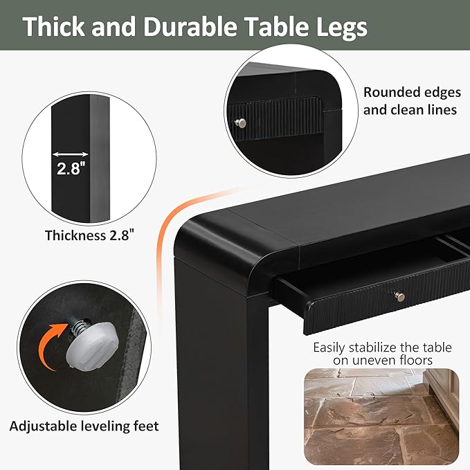 - This stylish console table is well constructed of thickened MDF frame and legs with feet levelers, ensuring a reliable and stable construction for lasting performance. Its top can hold up to 150 lbs.