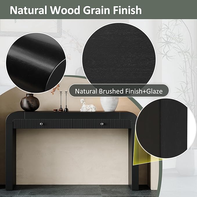 Farmhouse Modern Curved Console Table 54.3-Inch Sofa Entry Table Fluted Accent Tables with Storage Drawers for Living Room Entryway Hallway Furniture, Black