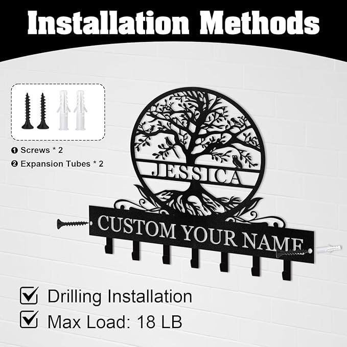 - 【Custom Design】Personalize your key holder with your family name or any custom text, making it a unique and thoughtful addition to your home. Perfect for personal spaces like entryways, hallways, or bedrooms. It can be a decorative piece for your home as well as a practical storage hook.