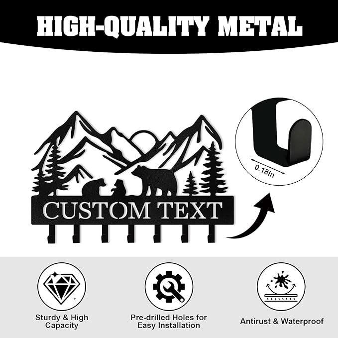 - 【Custom Design】Personalize your key holder with your family name or any custom text, making it a unique and thoughtful addition to your home. Perfect for personal spaces like entryways, hallways, or bedrooms. It can be a decorative piece for your home as well as a practical storage hook.