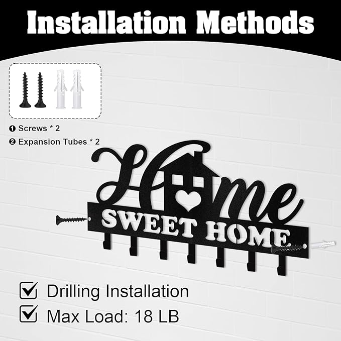 - 【Easy Installation】This key hook is designed with pre-punched holes and comes with a complete set of mounting hardware, making installation quick and effortless. It can be mounted to a variety of wall surfaces, even with frequent use, it maintains its strength and reliability.