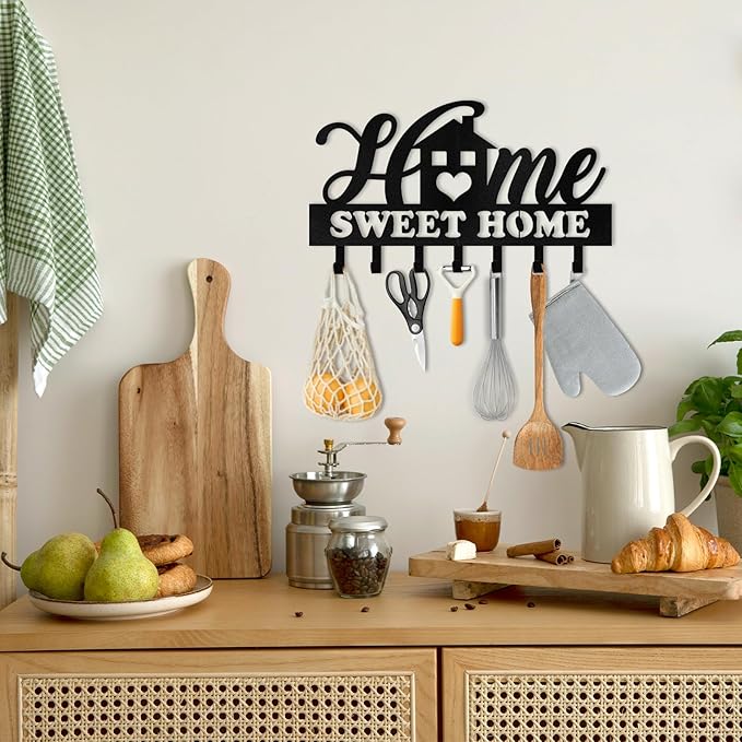 - 【Versatile & Functional】This wall-mounted key rack with multiple hooks is ideal for storing keys, coats, belts or accessories. It keeps your space organized while providing easy access to everyday items. Ideal for entrances, kitchens, offices, utility rooms, bedrooms and more.