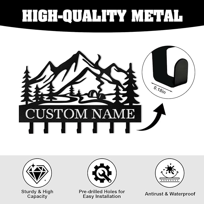 Personalized Metal Key Holder Wall Mount, Custom Name Camper Key Holder for Wall, Camping Decor, Key Hanger Organizer for Entryway Front Door Hallway Office, Housewarming Gifts Color07