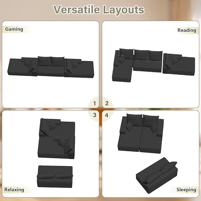 - Flexible Modular Design to Fit Your Lifestyle: Customize your space effortlessly with our versatile modular pieces. Easily arrange into a U-shape, L-shape, or spacious sofa bed to suit your room and lifestyle. Whether you're hosting guests or stretching out for a movie night, our sectional adapts to your changing needs with ease.