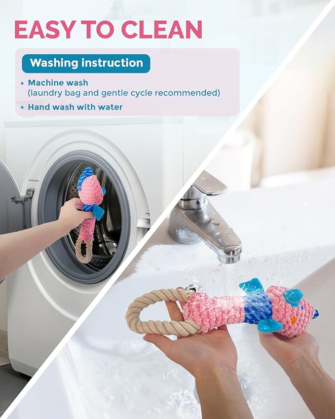 - EASY TO CLEAN: Say goodbye to worries about slobber and dirt. The Foxfocus dog squeaky toys are both hand- and machine-washable. Effortlessly maintain hygiene by cleaning off dirt and slobber, ensuring a fresh and safe chew every time with minimal effort, giving you more time for fun and less time on cleanup