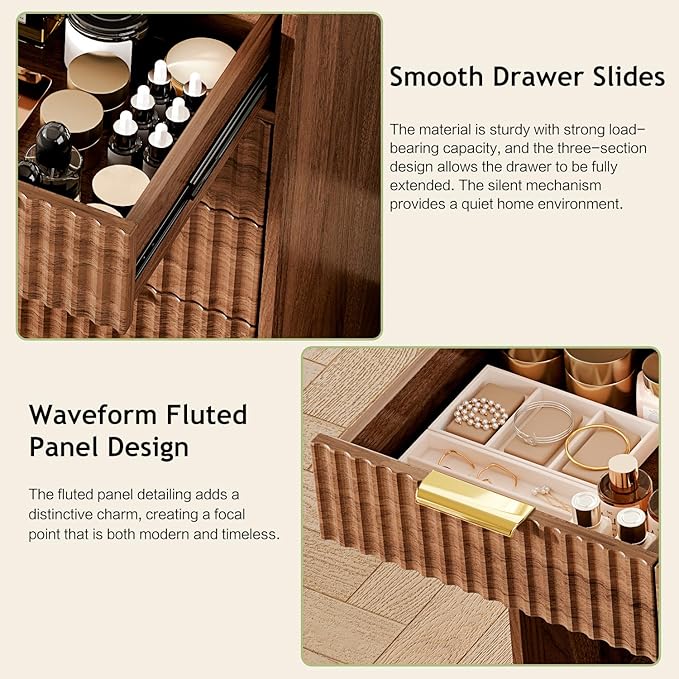 - 【Ample Storage with Drawers & Shelves】 This wood vanity includes 7 drawers, making it a practical vanity dresser that keeps cosmetics, jewelry, and accessories organized and within reach.
