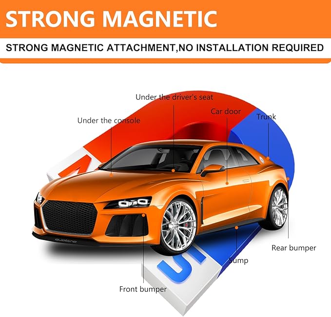 - 【MINI SIZE & MAGNETIC DESIGN】This Vehicle GPS Tracker is small and light, very easy to carry at any time with hidden on any metal surface. The magnetic housing is waterproof and rainproof, built-in two magnets, firmly attached to the vehicle, will not come off easily.
