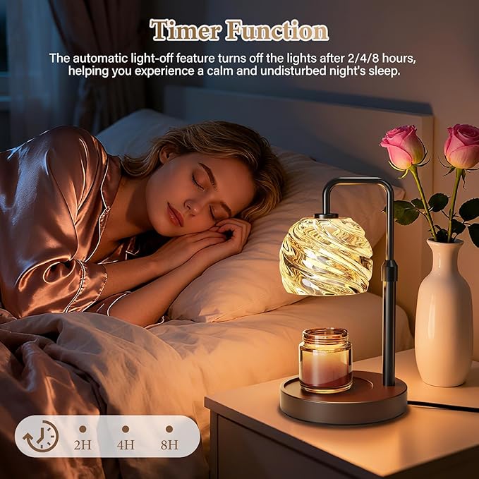 - Auto-Off Timer for Peace of Mind: Set the timer for 2, 4, or 8 hours and enjoy worry-free relaxation or sleep. WarmEmbrace candle warmer lamp with timer turns off automatically, saving energy and providing ultimate safety. It's the most convenient electric candle warmer