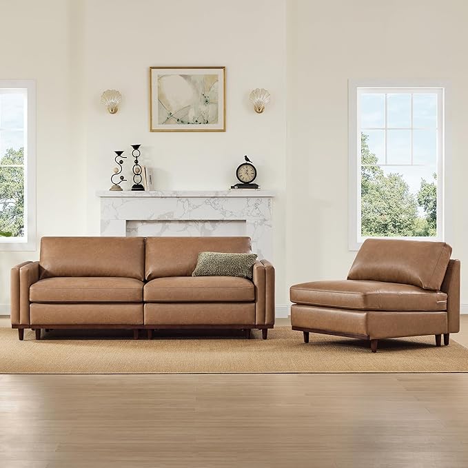 CHITA 118" Super Large Luxury 3 Seat Sectional Modular Sofa, FSC Certified Down Filled Modern Sofa, Deep Seat Comfty Cloud Couch, 3 Seat Couch, Solid Wood Leg, Faux Leather in Camel